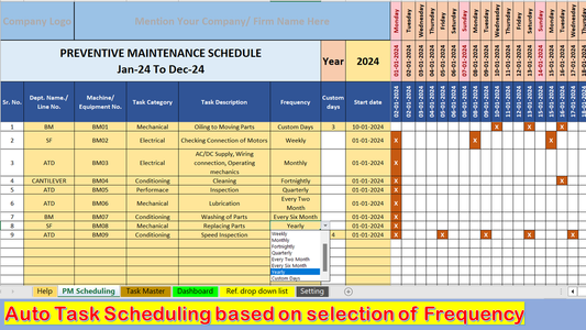 Excel Template Preventive Maintenance Scheduling with Dashboard V.2